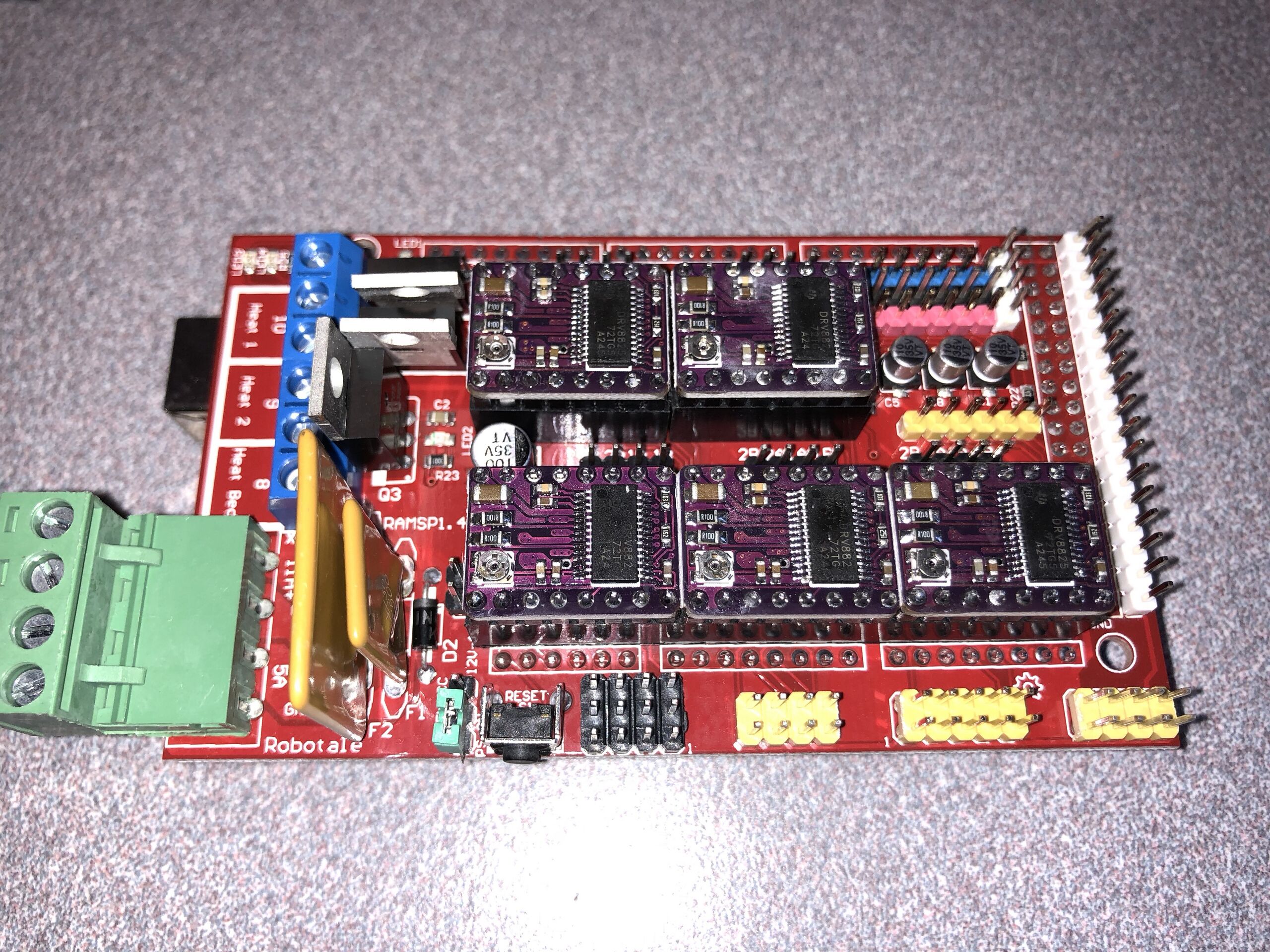 Carte RAMPS avec les pilotes DRV8825 installés.